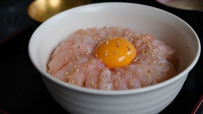 東尋坊には江の島のような海産物街があります。城ケ島の海産物街のほうが似ているかな。海鮮はもちろん文句なく美味しいし、いろいろ楽しめます。 上の写真は三番息子がオーダーした甘えび丼。